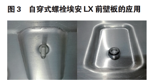 圖 3 為自穿式螺栓在埃安 LX 車(chē)身前壁板及地板區(qū)域的應(yīng)用。自穿式標(biāo)準(zhǔn)件可廣泛應(yīng)用于鋁合金車(chē)身鋁沖壓零部件。
