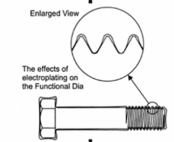 緊固件表面上多了一層鍍層,會增大緊固件外形尺寸和螺紋尺寸。引起螺紋配合的干涉,內、外螺紋不能正常裝配。