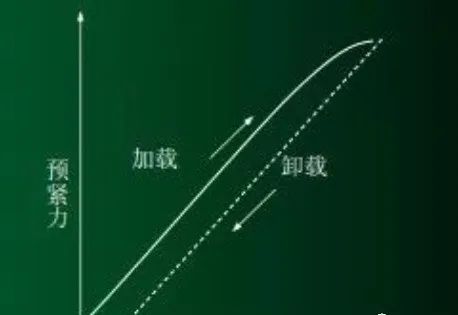 圖示就是QA法的原理,由于螺栓在擰緊和擰松時,用超聲儀所測得的回聲頻率隨螺栓的擰緊(伸長)和擰松(減小伸長量)而發(fā)生變化的曲線并不重合,同一螺栓軸向預(yù)緊力的上升頻率低于下降頻率。這樣,在用來測量螺栓的屈服點時應(yīng)予以注意。
