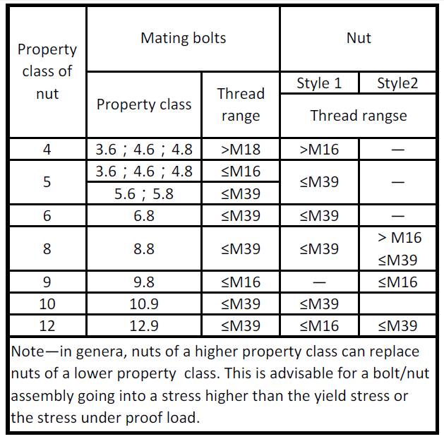 按照ISO898要求,與螺栓配合的螺紋副/螺母強(qiáng)度要與螺栓本身強(qiáng)度相匹配,比如螺栓強(qiáng)度為10.9的螺栓,應(yīng)采用強(qiáng)度為10的螺母。