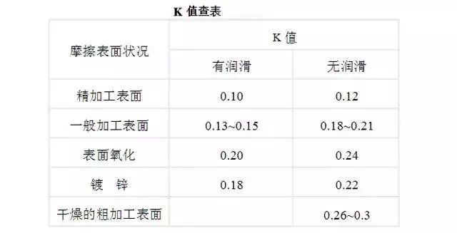 1、先說載荷和力矩的換算,力矩扳手制造商有著對應(yīng)表可以查,從理論力學(xué)教科書上也有公式,公式中一個系數(shù)是一個范圍,需要根據(jù)實際情況來確定。