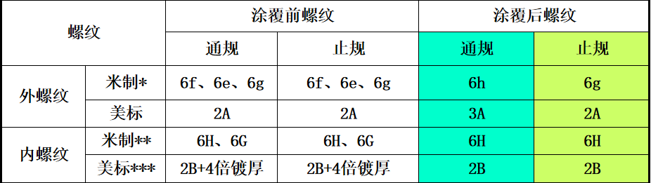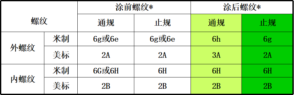 ■不同標準對不同鍍層厚度,推薦鍍前外螺紋上縮坯(f、e級)和內(nèi)螺紋擴孔處理二種;