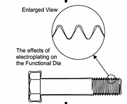 螺栓頭部和螺栓末端的鍍層比中間要厚些;由此鍍層的不規(guī)則性勢必更要影響到螺紋的干涉與配合,同時由于三角齒型的關系,鍍層厚度在螺紋上中徑當量的影響是4A倍的關系,所以不同鍍層厚度對中徑的影響要進行適當?shù)恼{整。