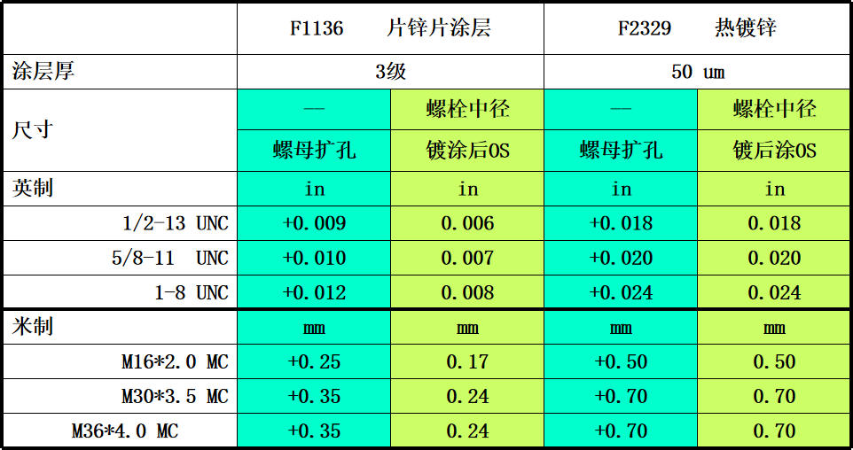 美制推薦達克羅和熱鍍鋅螺紋中徑調整量