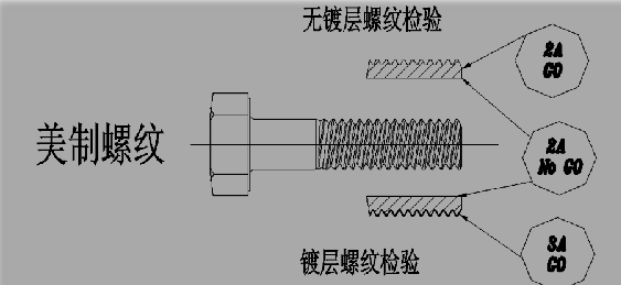 ASTM F1941-2015《緊固件電鍍》標準第6.3.1.2:“有鍍層的英寸外螺紋必須能接受3A級通規(guī),有鍍層的公制外螺紋必須能接受h級(6h或4h)通規(guī)。止規(guī)與鍍前一樣。”