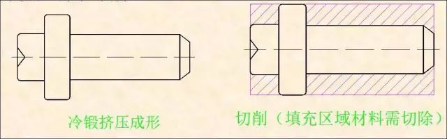 如下圖是切削和冷鍛加工的對(duì)比圖例: