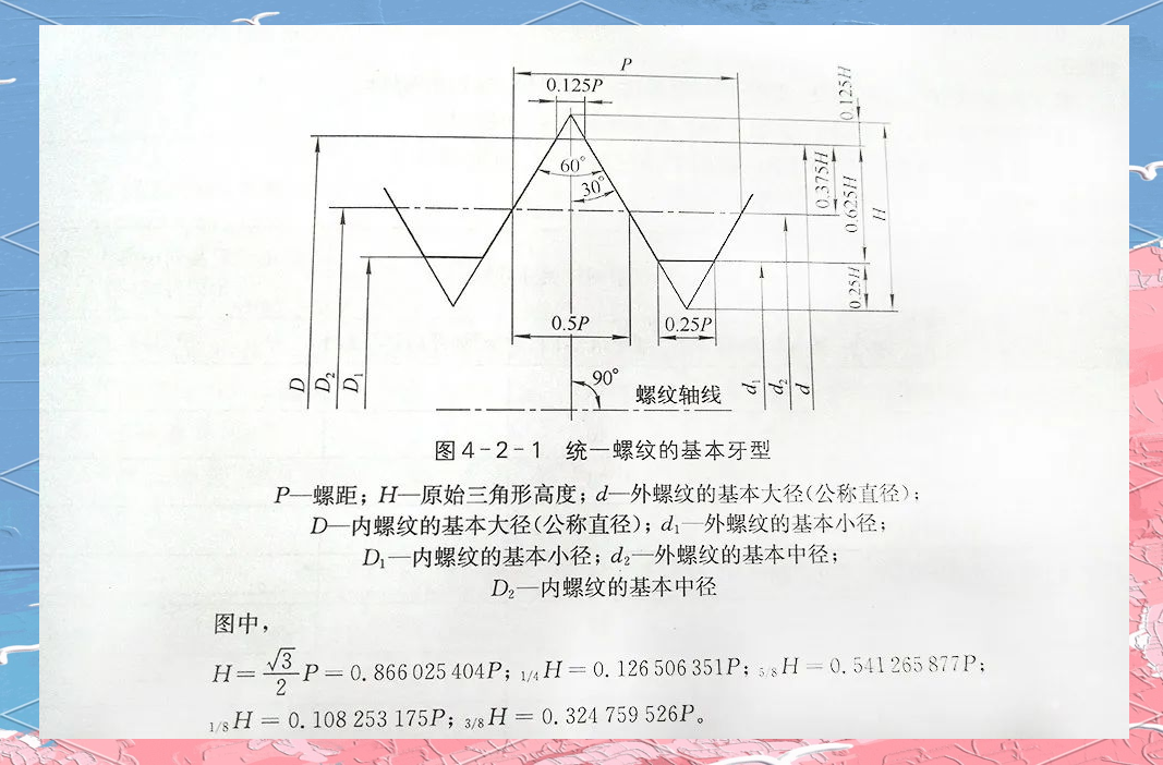 1864年,美國人威利.賽勒斯在參照英國惠氏螺紋標(biāo)準(zhǔn)體系的基礎(chǔ)上,制定了美國國家螺紋(UN)。這兩種螺紋在直徑、螺距和公差方面具有相似性,然而它們之間也存在顯著差異:美國螺紋(UN)的牙型角設(shè)定為60°,而削平高度則為H/8;相比之下,英國惠氏螺紋(BS)的牙型角為55°,削平高度則為H/6。