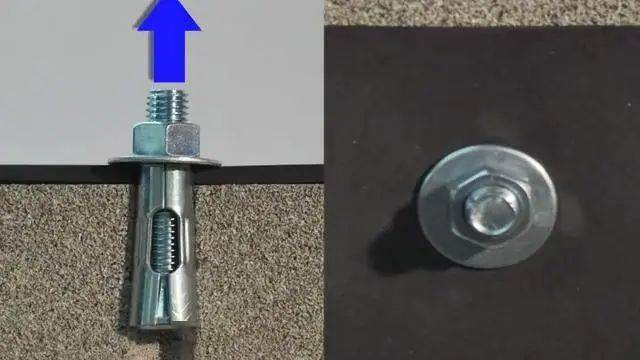 2、其次需要安裝平墊、彈墊和螺母,然后將螺母旋至螺栓和末端以保護(hù)螺紋,再將膨脹螺栓插入之前打好的孔內(nèi)。