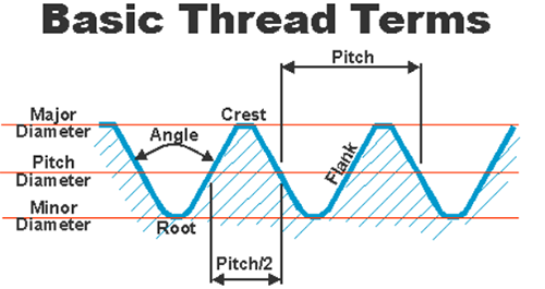 1、外徑d(大徑),螺紋的最大直徑,與外螺紋牙頂或內(nèi)螺紋牙底相重合的假想圓柱體直徑。螺紋的公稱直徑除管螺紋以管子內(nèi)徑為公稱直徑外,其余都以外徑為公稱直徑。