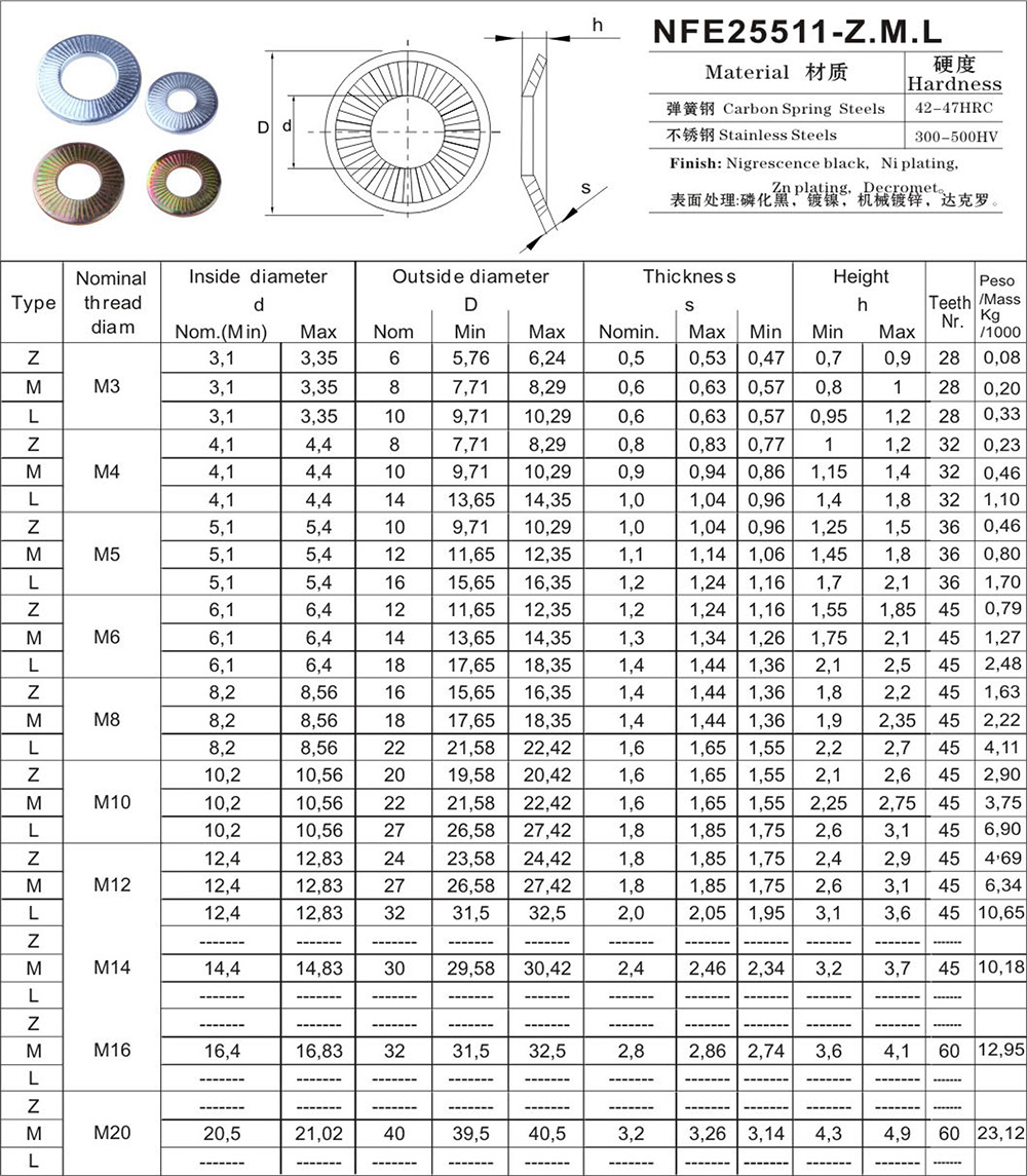 名稱:法士帶齒(滾花)錐面彈簧墊圈(CS)NFE25511