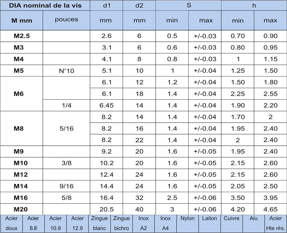 常用規(guī)格:M2.5,M3,M4,M5,M6,M8,M9,M10,M12,M14,M16,M20等。