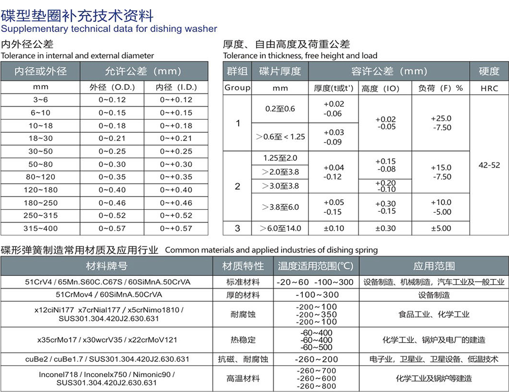 ![]() | 三疊碟形墊圈【NFE-3L.4L】標(biāo)準(zhǔn),通常有法式三疊、四疊自鎖墊片,三組合、四組合碟形彈簧墊圈。這是一款高性能機(jī)車專用防松動(dòng)墊圈,其超強(qiáng)的防松動(dòng)效果明顯優(yōu)于目前所有同類防松墊圈產(chǎn)品。本產(chǎn)品廣泛使用于(國(guó)防、冶金、電力、核設(shè)施、高鐵、地鐵、客車軌道、高速列車)橋梁鐵路工程項(xiàng)目和工礦機(jī)械設(shè)備上,以及特種機(jī)械和高振動(dòng)負(fù)荷的機(jī)械設(shè)備制造裝配領(lǐng)域。 產(chǎn)品全部采用SK5、SK7、SUS304、316(A2、A4)等進(jìn)口優(yōu)質(zhì)鋼材,所有產(chǎn)品出廠前都經(jīng)過(guò)嚴(yán)格硬化處理,絕對(duì)保產(chǎn)品性能。常用規(guī)格有M4-M20,并常年備有庫(kù)存現(xiàn)貨。 使用材料:經(jīng)過(guò)熱處理的高碳鋼,表面經(jīng)鍍鋅氫或鋅鎂特達(dá)克羅涂層處理,并有不銹鋼經(jīng)高彈性硬化處理。 結(jié)構(gòu)特點(diǎn):墊片由幾層(3-6層)壓疊而成,可以提供非常強(qiáng)的預(yù)緊力。 法式三疊蝶形墊圈的產(chǎn)品特點(diǎn):在不改變螺栓螺母應(yīng)用方式的前提下,可以提高內(nèi)部預(yù)緊力,不易松脫;兼具平墊和彈墊的作用;和普通彈墊相比,緊固件受力更均勻;剛性更好,不易變形;在受熱的場(chǎng)合,也能提供良好的緊固;在高振動(dòng)的場(chǎng)合,預(yù)緊力不會(huì)降低,普通的墊片在振動(dòng)達(dá)到一定次數(shù)后,預(yù)緊力迅速下降,而多層墊片并不會(huì)下降。 |