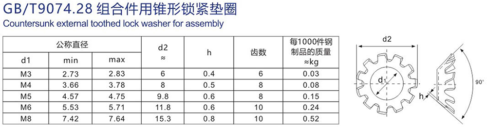 • 組合件用錐形鎖緊墊圈 GB/T 9074.28-鋸齒彈性墊圈